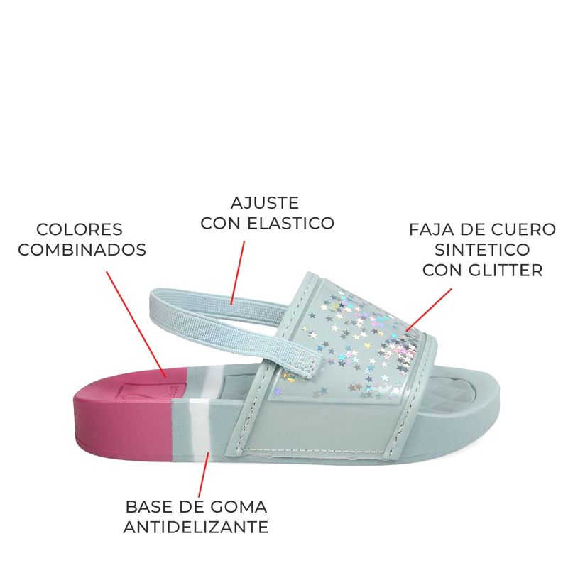 Sandalia Chinela Con Elastico Glitter Molekinha 2125/425 - Capellada en sintético. - Faja con glitter. - Ajuste elástico. - Base de goma antideslizante.
